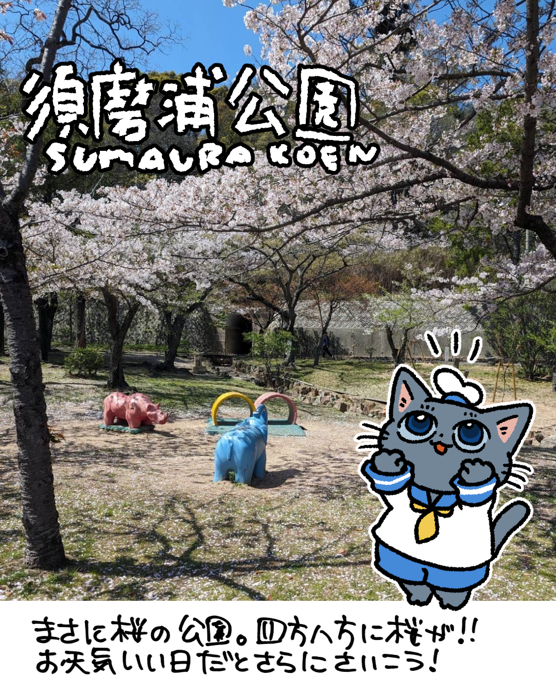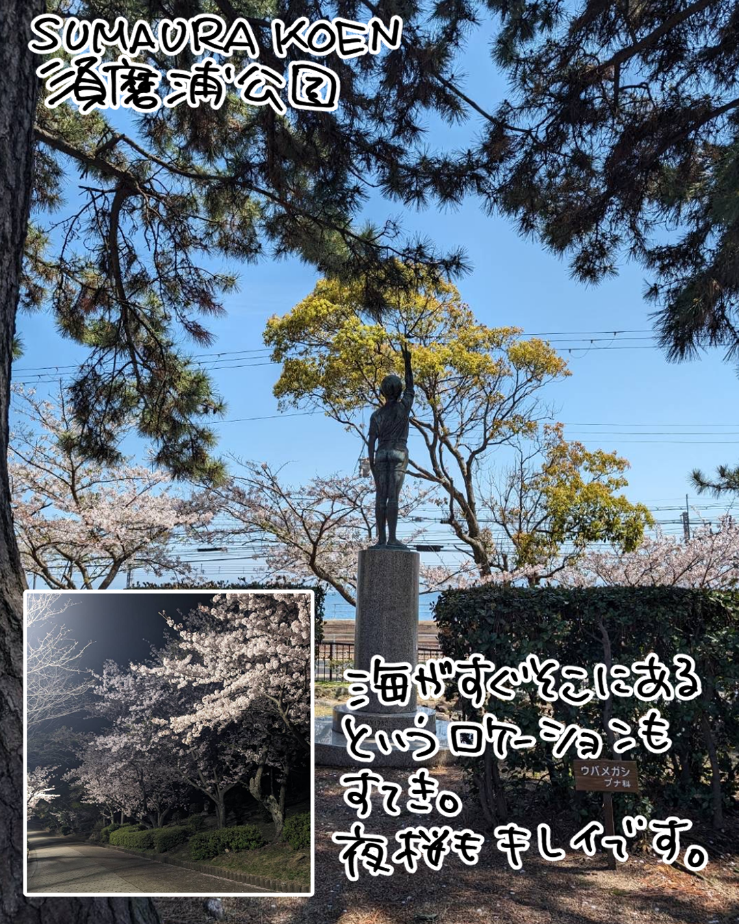 敷地も広く山陽須磨浦公園駅から東のほうまでなが~い公園があってそこには桜の木がたくさん!