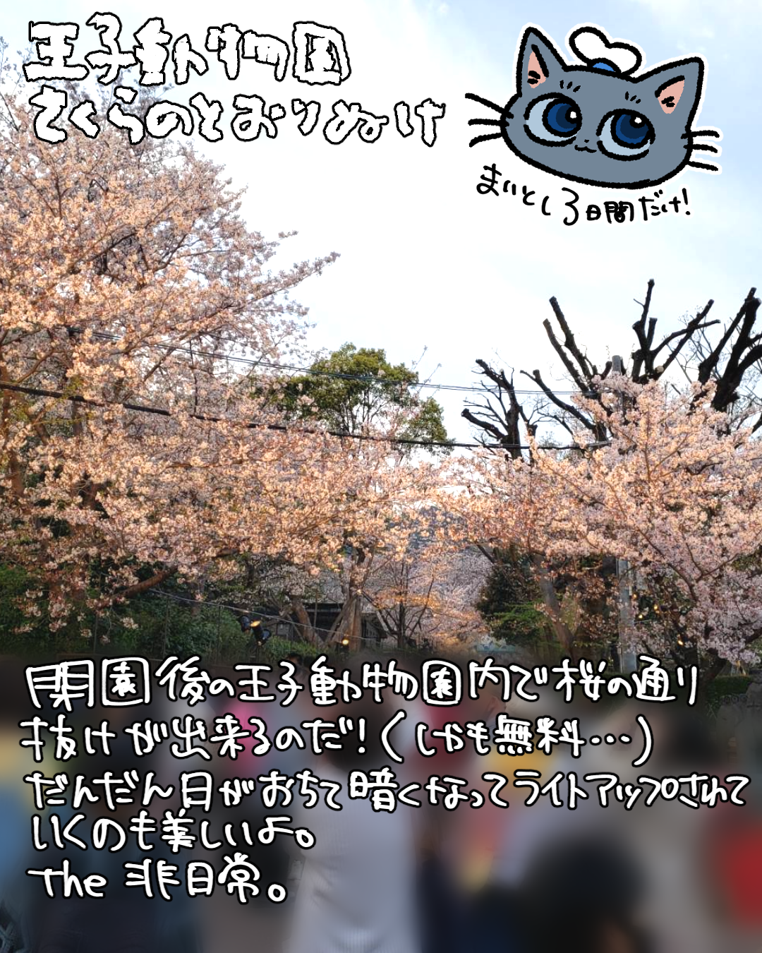 王子動物園も桜がとっても綺麗!毎年4月頃には3日間だけ夜も王子動物園を開放して夜桜通り抜けができるのも嬉しいところ。ちゃんと遊園地も楽しめるところも最高なんです。